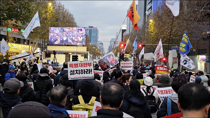 11월 29일, 서초역 8번 출구에 나갔다. 그것이 단 한 번의 결정적인 싸움이나 행동은 아니겠지만 이 한심한 '쓰레기'를 치우기 위해 아내와 할 수 있는 유일한 실천이기 때문이다.